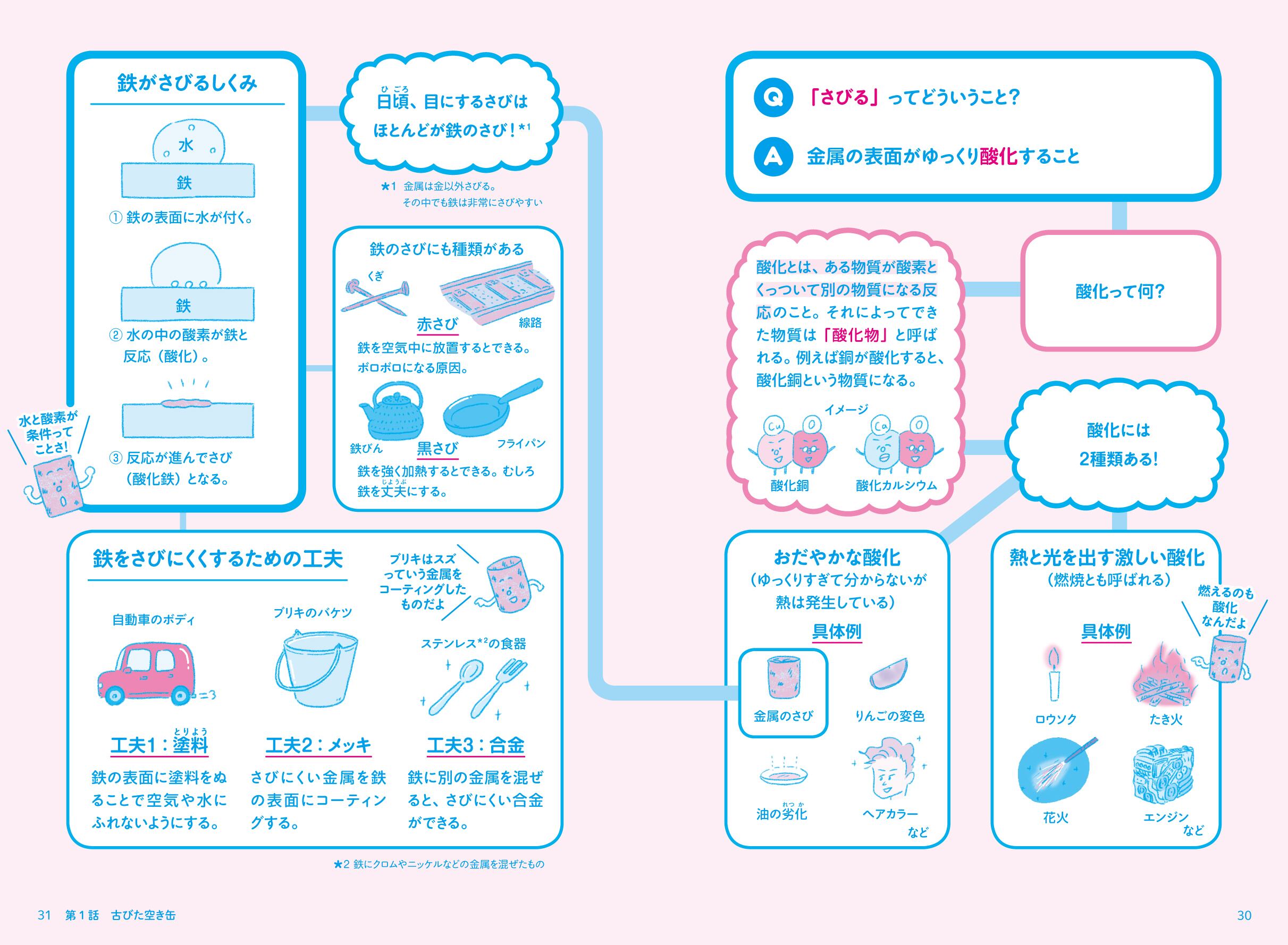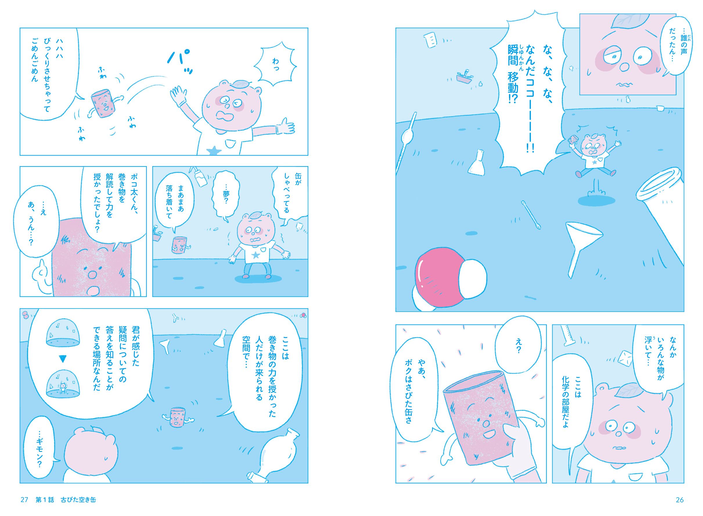 日常の理科的疑問がマンガで分かる!小さな原子くん、関西弁のケツエキーズ、ムッシュ音符さん、虹ちゃん、チャラいスティックのりボーイなど愉快なキャラクター達が分かりやすく解説。